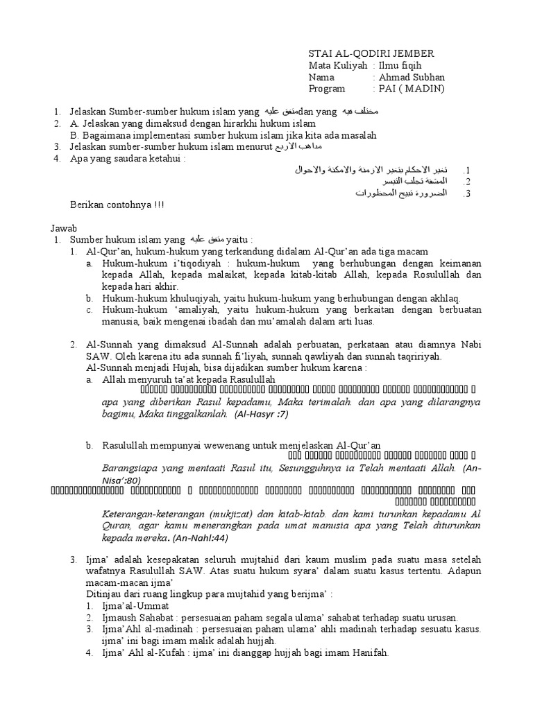Soal Tentang Sumber Hukum Islam : Soal Dan Jawaban Pengetahuan Agama Islam Kumpulan Contoh Surat Dan Soal Terlengkap - Nov 16, 2012 · mata kuliah :