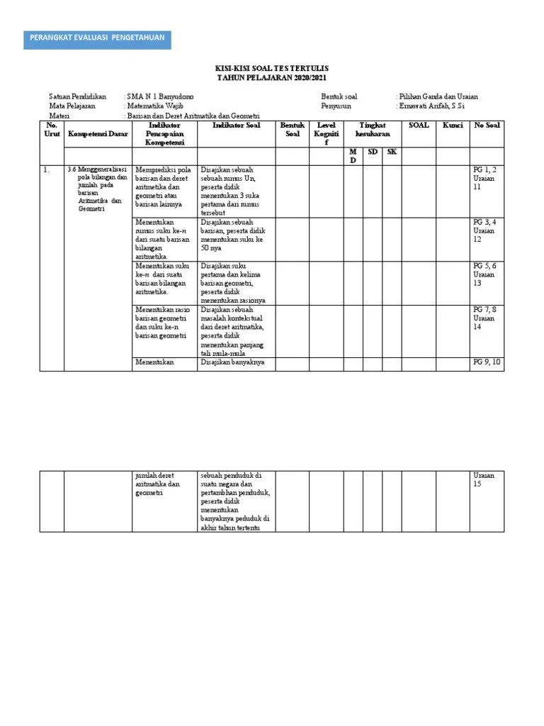 Kisi-Kisi Penulisn Soal Hots Barisan Dan Deret - Contoh Kisi Kisi Soal Pilihan Ganda Sd Contoh Soal Terbaru : Menjelaskan dan melakukan operasi hitung bilangan bulat dan.. Widodo budhi & zainnur wijayanto halaman : Viii pola, barisan, dan deret. Kaidah penulisan soal hots dan bukan hots intinya sama saja baik dari aspek konstruksi dan bahasanya, . Analisis kemampuan menyelesaikan soal higher order. Menjelaskan dan melakukan operasi hitung bilangan bulat dan.